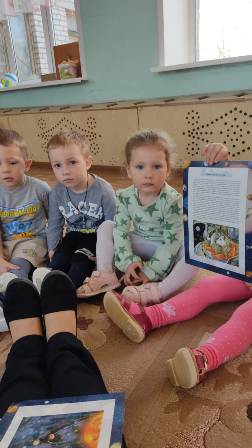 Воспитанники Старшей группы вместе с воспитателем Яшунькиной Ю.П. отправились покорять космическое пространство, слушали рассказы о знаменитых собаках Белке и Стрелке, которым удалось раньше человека побывать в космосе, узнали много интересного об учёных, стоявших у истоков развития космонавтики, о планетах Солнечной системы, о космических полётах. С большим удовольствием изготовили макет солнечной системы из ниток и шаров. В группе оформлена тематическая выставка рисунков, которые подготовили дети вместе с родителями. Чего среди них только нет: и ракеты, и планеты Солнечной системы. Работы получились яркие, оригинальные и красочные. Теперь у некоторых ребят появилась мечта - полететь в космос. Кто знает, быть может, когда-то, для кого-то из них это станет явью. А также посетили сельскую библиотеку, где дети с большим интересом слушали рассказы Бороздина «Первый в космосе» о первом человеке, отправившемся покорять космическое пространство и рассказы «Запускать змея», «Война», «В небе». Рассматривали энциклопедии о космосе, делились впечатлениями. Во время занятия ребята не только получали новую информацию, но и с большим удовольствием собирали ракету из геометрических фигур, смотрели мультфильм о планетах и их особенностях, разгадывали загадки о космических объектах.
