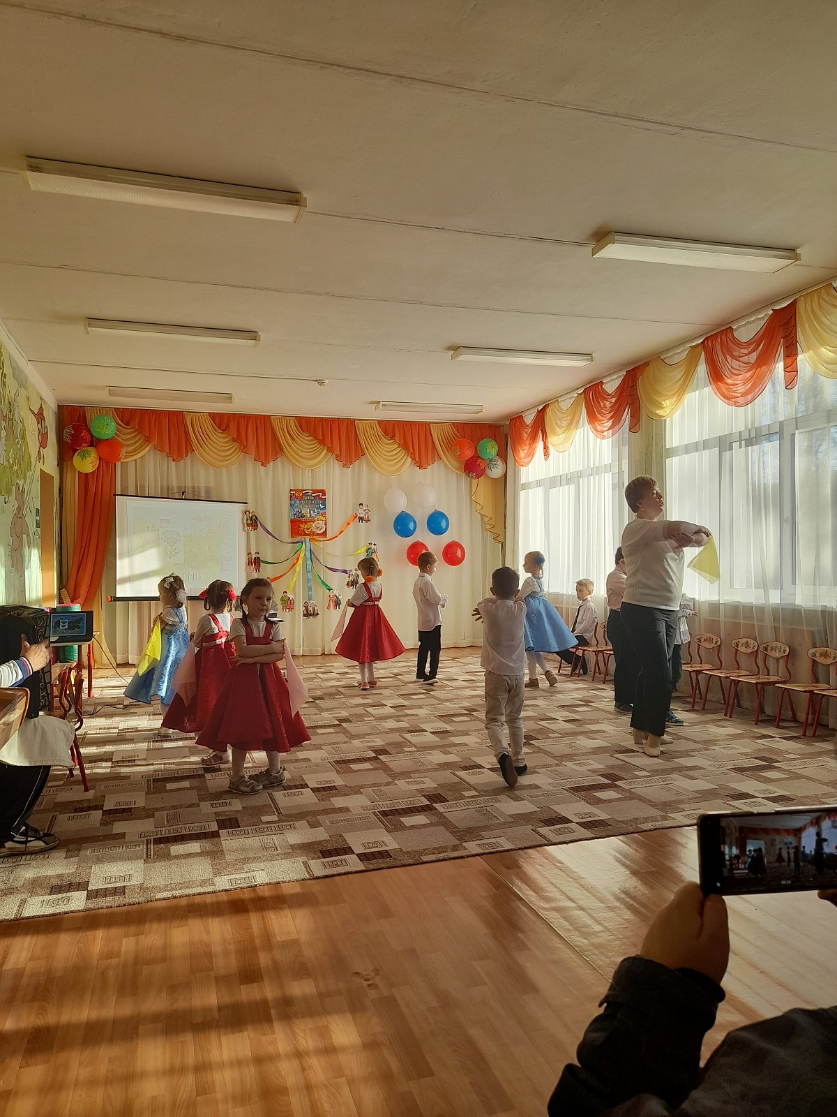 В преддверии этого праздника в детском саду проходят тематические мероприятия, направленные на патриотическое воспитание дошкольников: познавательные занятия «День народного единства: дружба народов» В старшей группе было проведено мероприятие с целью знакомства детей с праздником – «День народного единства», расширения представления детей о родном крае, стране, в которой мы живем, развития любознательности, привития любви к Родине, воспитания патриотических чувств, доброжелательного отношения друг к другу, желания прийти на помощь.