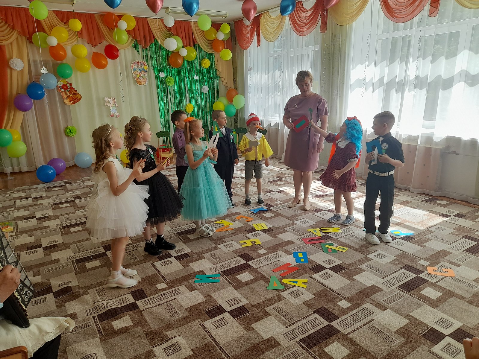 Чтобы сделать этот праздник поистине запоминающимся — детский сад украсили разноцветными воздушными шарами. Нарядные девочки и мальчики – звездочки детского сада, взволнованные мамы и папы – все это было на первом в их жизни выпускном.