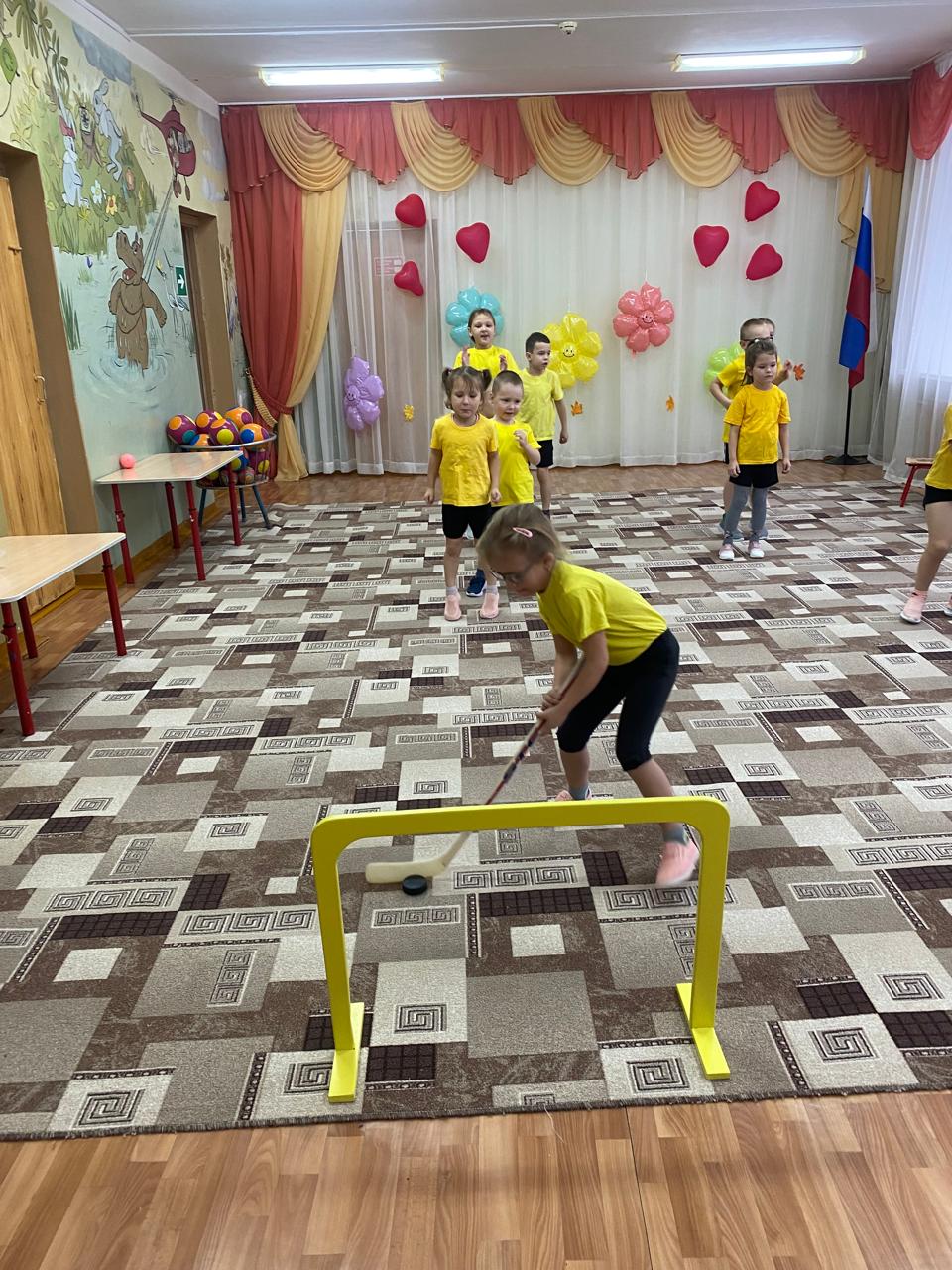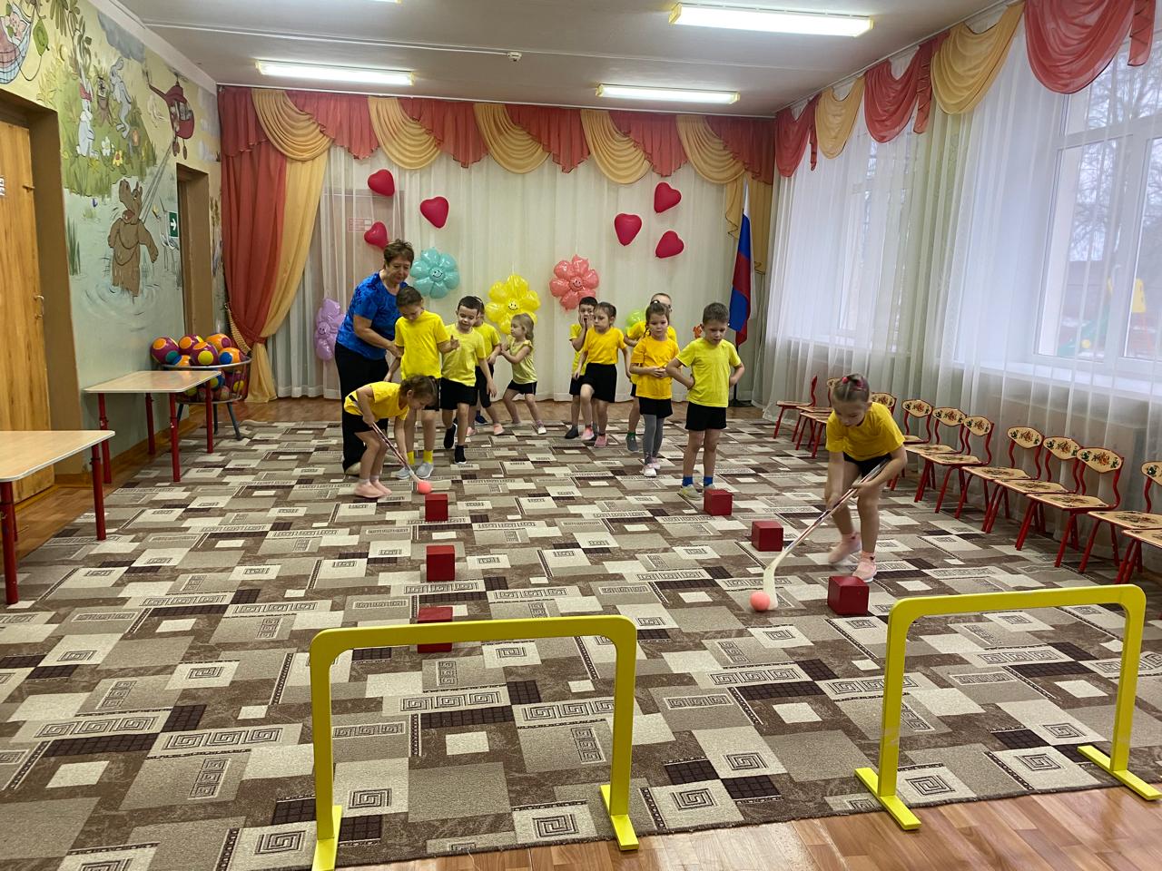 1 декабря отмечался Всероссийский день хоккея. Воспитатели. познакомили детей с увлекательной игрой – хоккей и инвентарем для него, чем вызвали интерес к игре и желание научиться в неё играть. После чего ребята поучаствовали в играх и эстафетах с элементами хоккея, отлично справились с заданиями и освоили основные движения броска клюшкой. Хоккей развивает точность, глазомер, координацию движений, быстроту, воспитывает выдержку и командный дух
