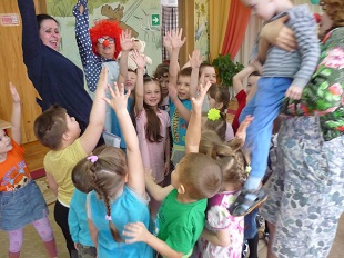 11 апреля в ДОУ прошло тематическое занятие "Хорошо когда есть друзья". к ребятам в гости приходили клоуны с веселыми сценками, инсценировками. Дети учили их правилам хорошего тона. В конце занятия все помирились, подружились и стали верными друзьями.