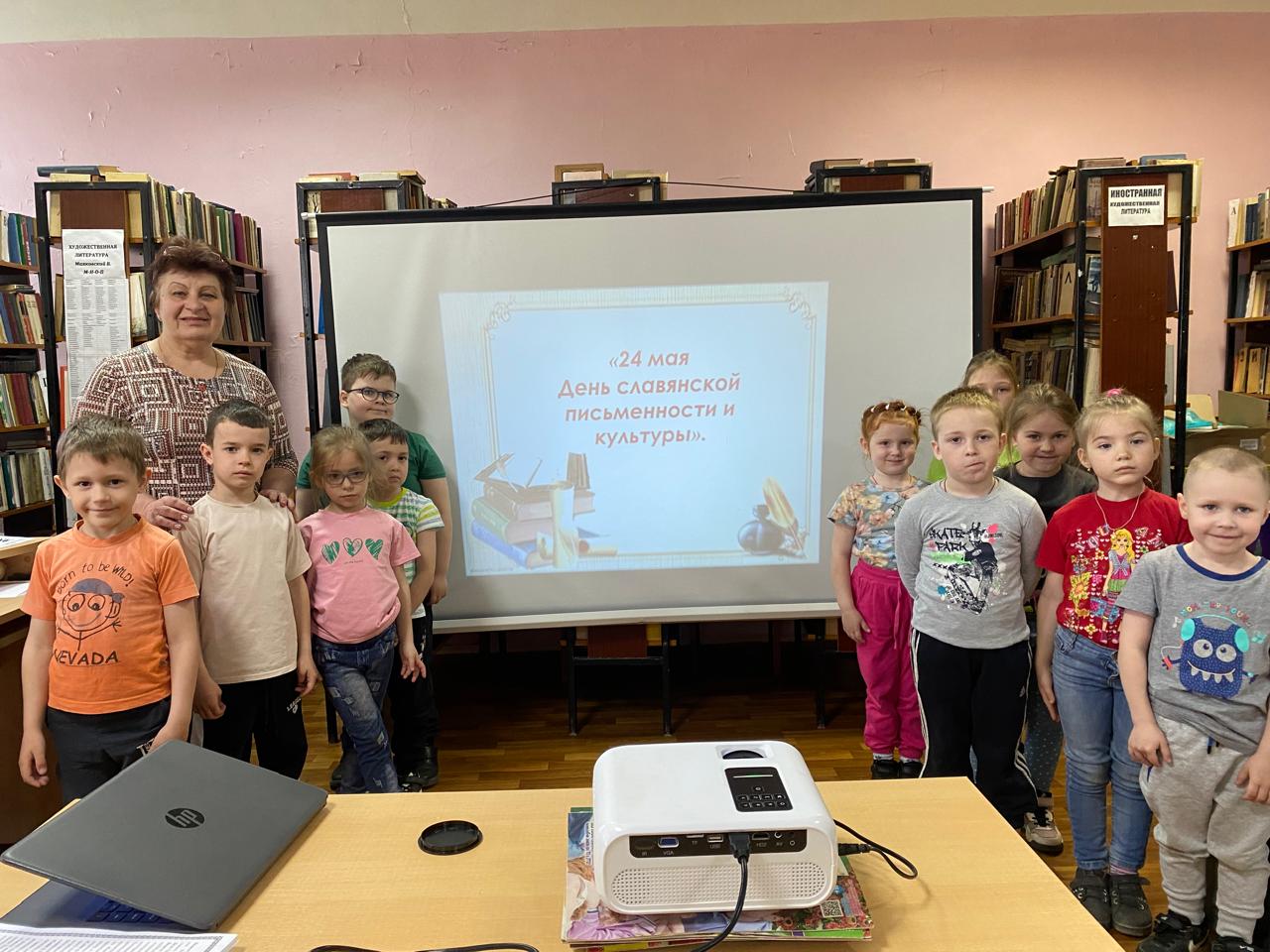 Дети Старшей группы МБДОУ №13 «Василек» посетили сельскую библиотеку, где для них прошло мероприятие, посвященное Дню славянской письменности. Ребята познакомились с историей возникновения славянского алфавита и славянской письменности, узнали о их создателях- братьях Кирилле и Мефодие. С интересом рассматривали старинные буквы, отметили, что некоторые похожи на современные буквы алфавита, но по-другому звучат.
