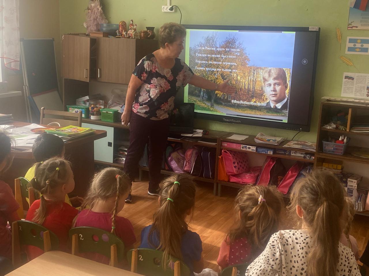 Для ребят старшей группы воспитателями проведен час поэзии «Осенними тропинками»., посвященный С.А. Есенину.