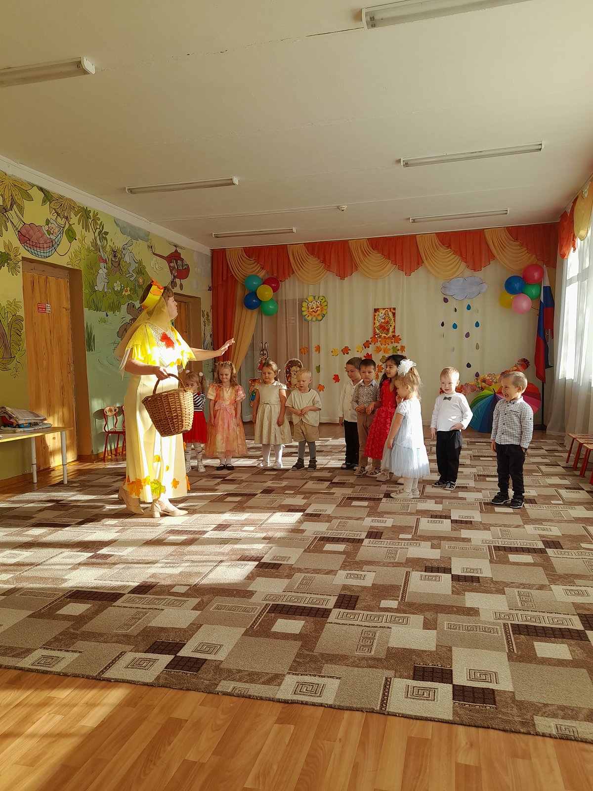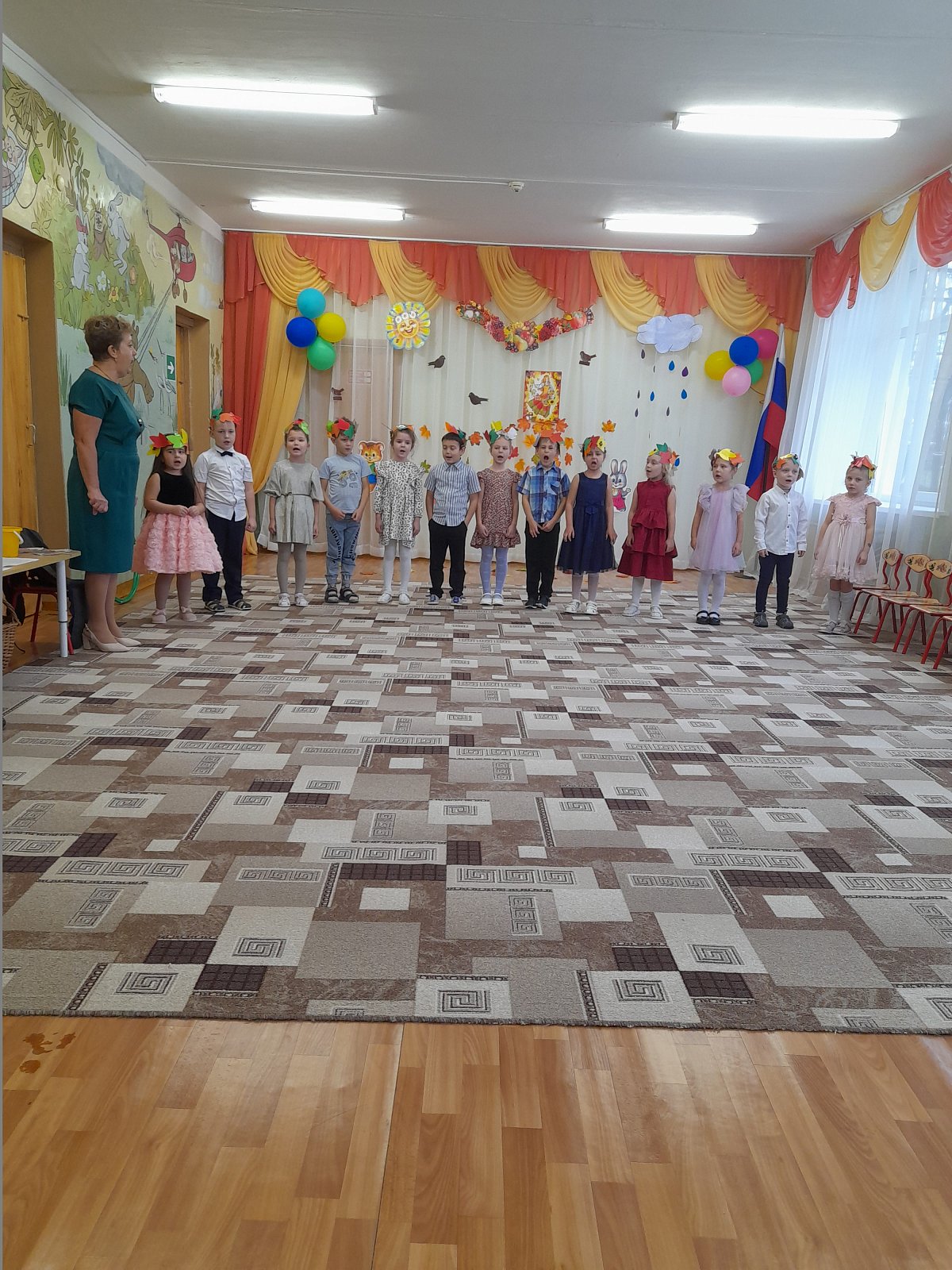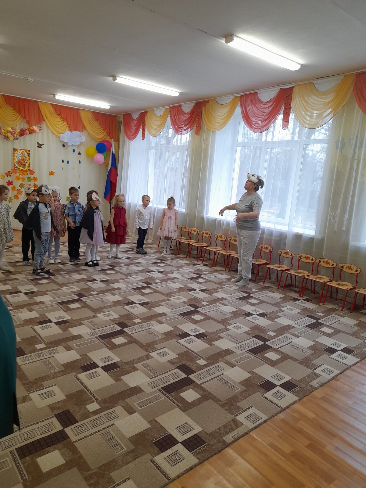 На дворе пасмурно и холодно, не хватает солнечного тепла, а у нас в музыкальном зале царит всегда теплая, доброжелательная атмосфера!